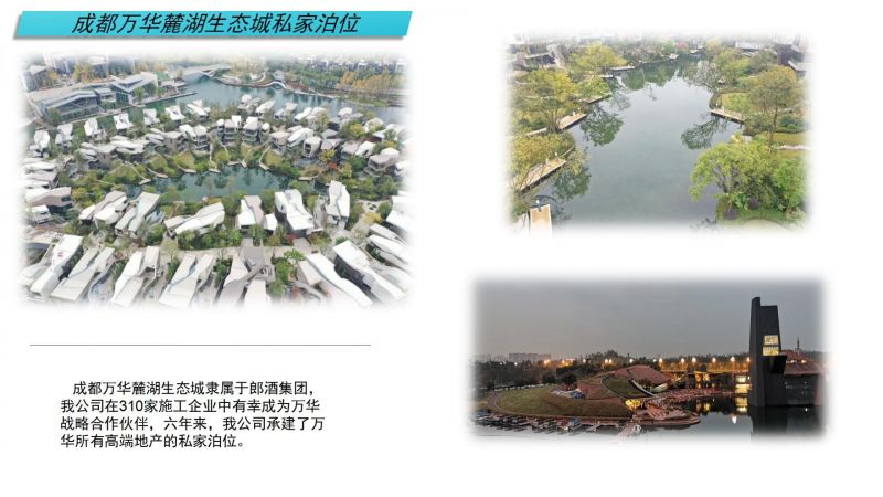 成都萬華麓湖生態(tài)城被譽(yù)為中國房地產(chǎn)界“四大神盤”之一,以高端高品質(zhì)和高要求為名。我司在其310家施工企業(yè)中脫穎而出,成為萬華戰(zhàn)略合作伙伴。七年來,我司承建了萬華所有高端地產(chǎn)的私家泊位。
