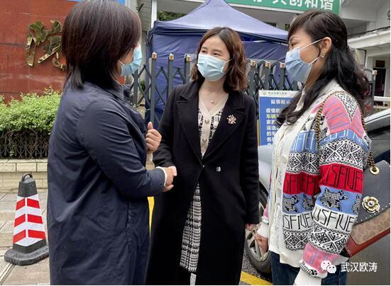 在楊園街道副書記汪海榮的陪同下,武漢市武昌醫(yī)院黨委書記關(guān)愛民、院長李相友、紀(jì)委書記洪毅、工會主席李秀榮在百忙之中趕來,與前來慰問的武昌區(qū)婦聯(lián)一行及武漢歐濤的占榮花董事長進行了親切交談。表示雖然目前武昌醫(yī)院援外醫(yī)療隊依然奮斗在抗疫一線,但家中四面八方涌來的支持和關(guān)愛,一直是他們最堅實的后盾。