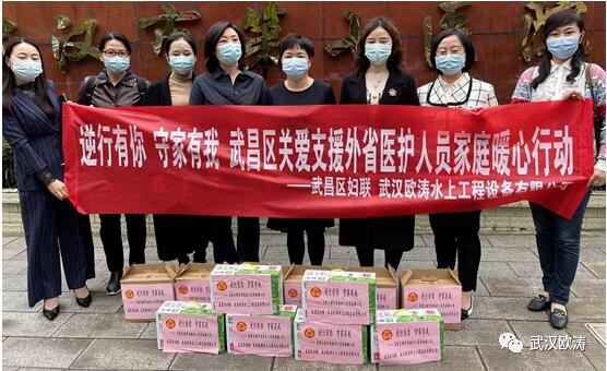 關(guān)心、關(guān)愛疫情防控一線工作人員,巾幗企業(yè)家在行動!4月15日清晨,裝載滿滿敬意和愛心的慰問物資車輛,隨同武昌區(qū)婦聯(lián)主席汪陳琛、副主席何世麗,區(qū)衛(wèi)健局醫(yī)政科科長張雪淋和武漢歐濤水上工程設(shè)備有限公司董事長占榮花一起,在蒙蒙春雨中,駛向武昌醫(yī)院。