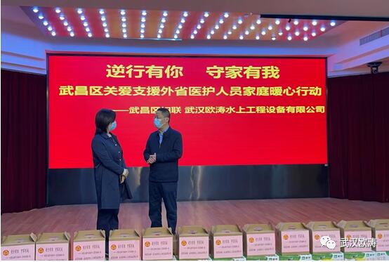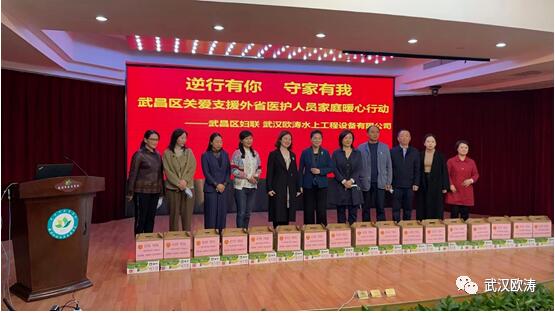 武昌區(qū)婦聯(lián)和武漢歐濤一行慰問代表,將愛心大禮包交付醫(yī)護代表,向連續(xù)奮戰(zhàn)、堅守崗位的工作人員致以親切問候和誠摯敬意,同時期待支援外省的醫(yī)護工作者早日平安歸來。